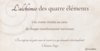 Les 4 éléments — Terre, Air, Feu et Eau — tissent la trame subtile de chaque transformation.